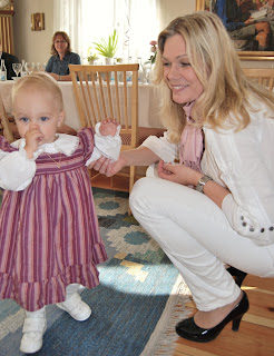 Jag hade på mig min nya favvoklänning från OM och trivs jättebra i den! ( Tack alla ni som "övertalade" mig att behålla den..hihi :)Storebror Trulle hade för dagen på sig nya finkläder dvs kavaj, skjorta slips och gubbkeps! Gullungen min...